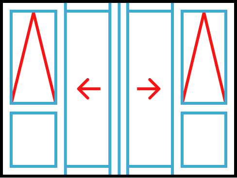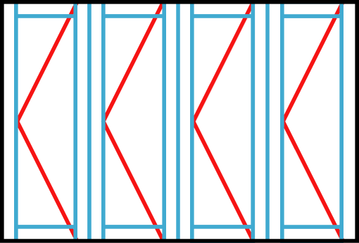 Bifold door 2+2-panel with layback