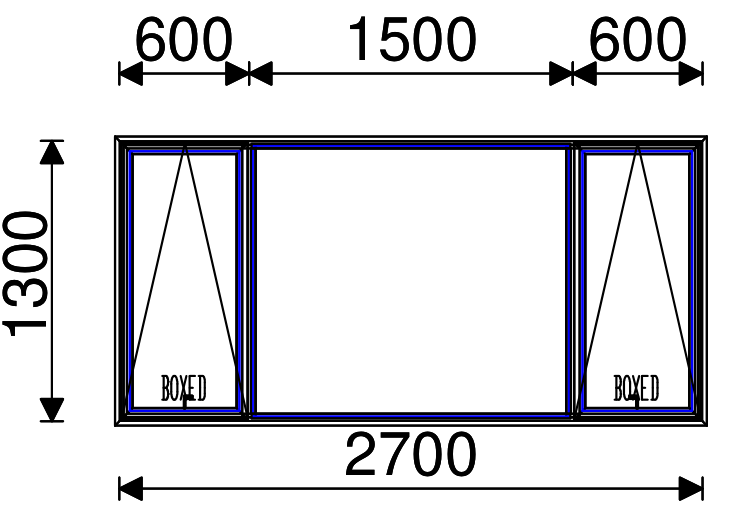 Residential Non-Thermal Double Glazed Sash+Fixed+Sash Window 1300mm (H) x 2700mm (W)