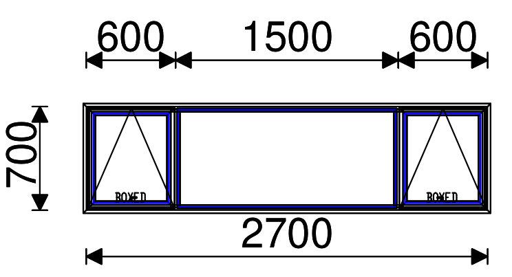Residential Non-Thermal Double Glazed Sash+Fixed+Sash Window 700mm (H) x 2700mm (W)