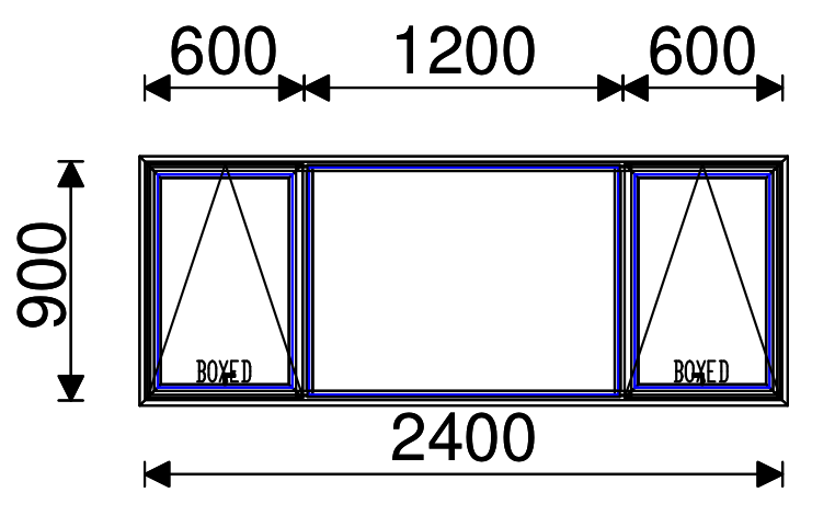 Residential Non-Thermal Double Glazed Sash+Fixed+Sash Window 900mm (H) x 2400mm (W)